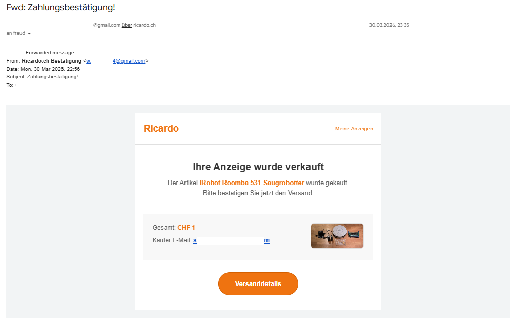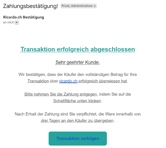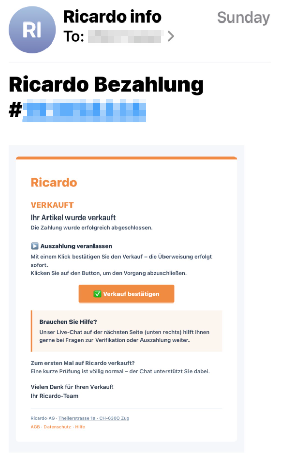 - Nur Absender mit xxx@ricardo.ch stammen wirklich von Ricardo.